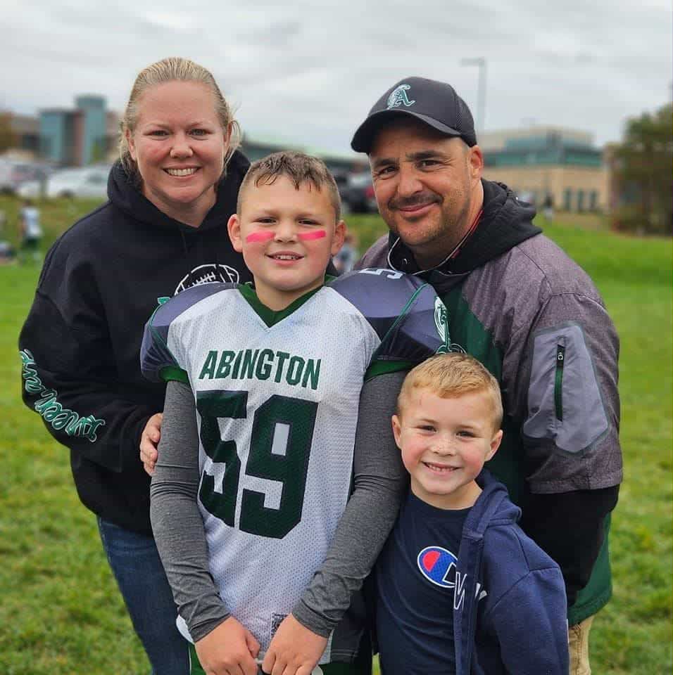 My name is Rachel Brodeur, and my incredible husband was Greg Brodeur. We are the parents of two wonderful boys — Andrew, age 11, and Aiden, age 8. We live in Abington, where Greg spent years giving back to the community as a youth football coach, youth baseball coach, and flag football coach. He was truly loved and respected by parents, players, and anyone who had the privilege of knowing him. Coaching wasn’t just something he did — it was part of who he was.